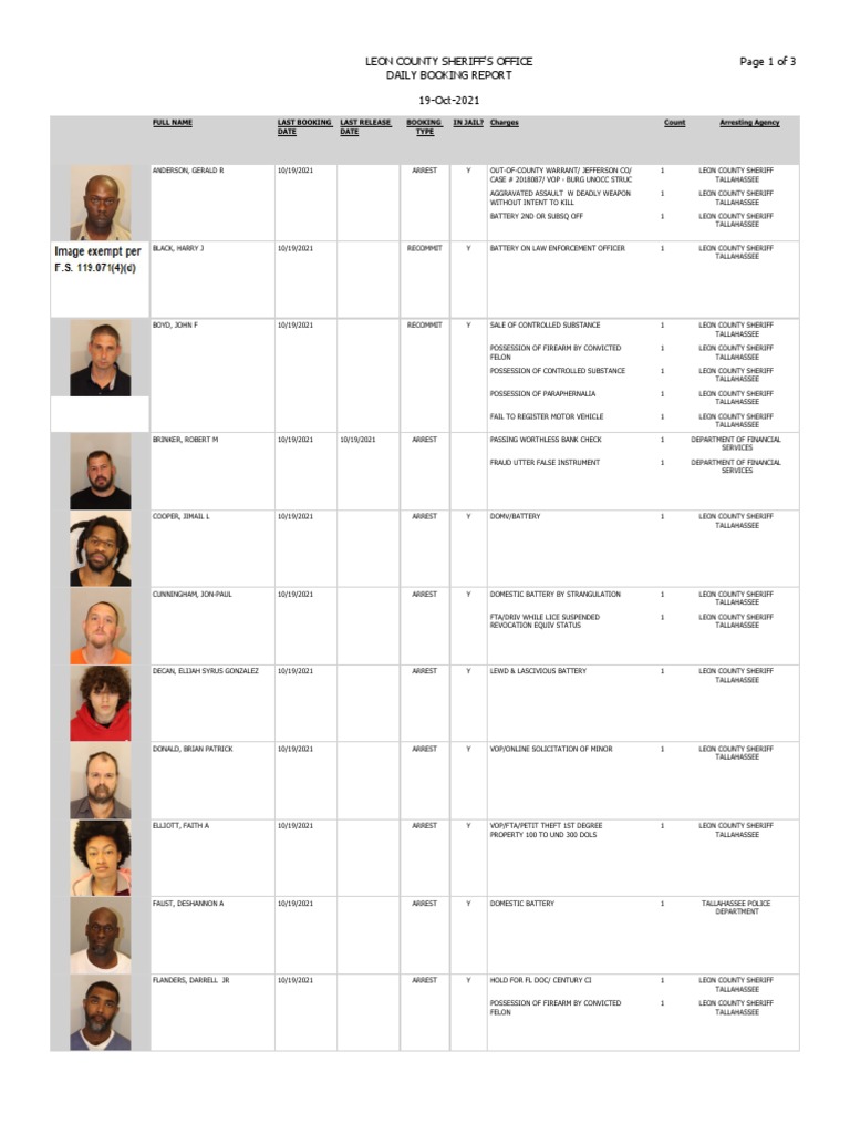 Home Unlabelled Tallahassee Booking Report October 2021 - Leon County Booking Report Oct 17 2021 Pdf Justice Crime Violence You can view the jul 22 2021 leon county booking report. Or imbed links to other Internet sites may be. Attached is a PDF file containing all bookings at the Leon County Detention Facility from Nov.